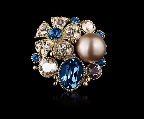 Blue Crystal Flower Brooch